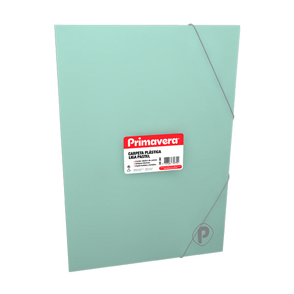 Organiza y protege tus materiales escolares con la carpeta plástica liga en color verde pastel de Primavera. Con un acabado de alta calidad, colores translúcidos, cordón elástico de colores y solapas inferiores, esta carpeta ofrece total impermeabilidad para mantener tus trabajos a salvo. No dejes pasar la oportunidad de tener esta carpeta 100% original de Primavera. ¡Cómprala ya!