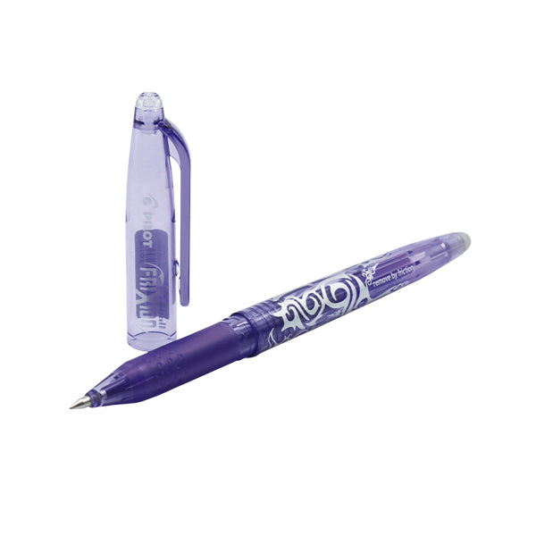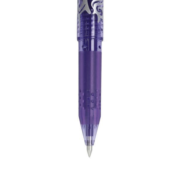 Bolígrafo de tinta borrable, el color de la tinta desaparece por fricción. Punta fina de acero inoxidable.