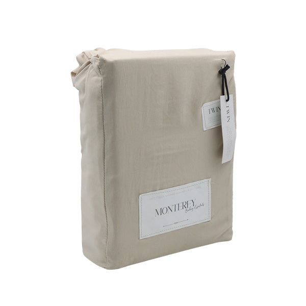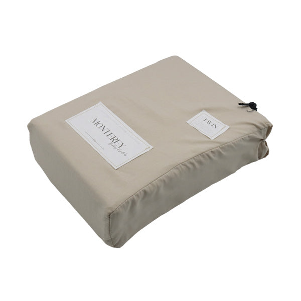 Juego de sábanas de microfibra de primera calidad incluye sábana encimera, sábana bajera ajustable y funda de almohada. 100% poliester. Color natural. Tamaño twin