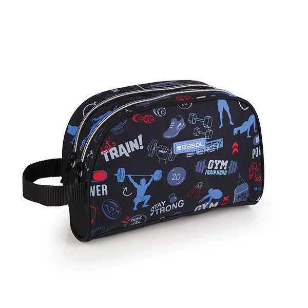 Cartuchera doble tipo neceser de 4.4 litros, colección Training, marca Gabol. Hecha de poliéster impermeable, con forro interno para mayor protección. Ideal para organizar tus artículos personales de manera práctica y segura.