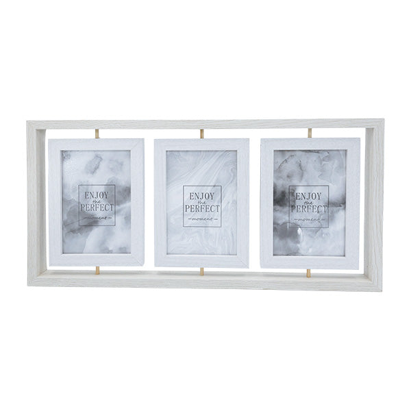 "Portaretrato versátil para 3 fotos, liviano y adaptable. Perfecto para embellecer su dormitorio, puerta de dormitorio, oficina, cocina o sala de estar. Ideal como regalo atento para cualquier ocasión. Dimensiones: 44x22x3 cm."