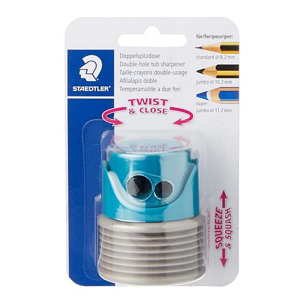 Equipado con depósito y 2 agujeros para distintos tamaños de lápices, su mecanismo de bloqueo giratorio evita derrames de virutas. Ideal para mantener la limpieza y comodidad en el uso diario.