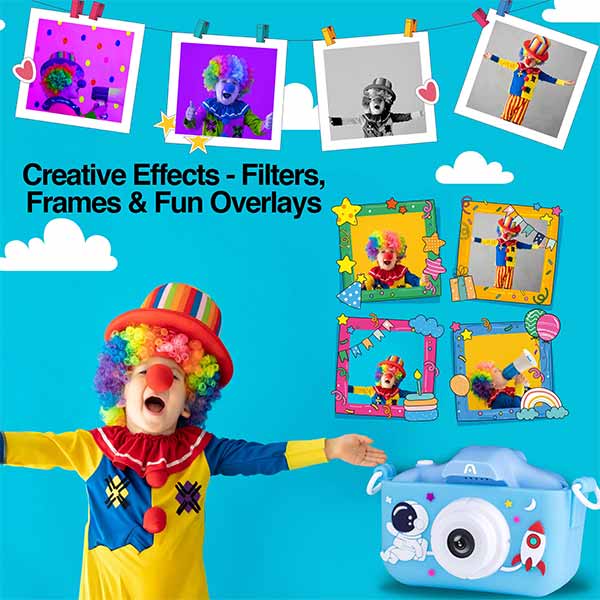 Cámara digital para niños con pantalla IPS de 2.0” – Capturá fotos de hasta 40 MP y videos HD 1080P con cámara dual, zoom 8X y divertidos efectos. Incluye tarjeta TF de 32 GB, juegos, MP3, batería recargable, puerto USB-C y funda de silicona. Disponible en azul y rosa. Ideal para pequeños creadores.