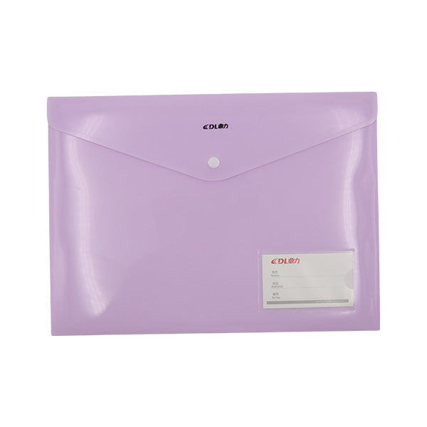 Sobre plástico horizontal con botón colores pastel