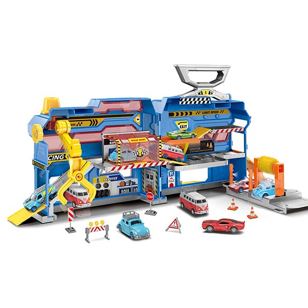 "¡Explora la diversión con nuestro Estacionamiento con Luz! Este emocionante conjunto incluye luces (baterías incluidas) que añaden emoción a la experiencia de juego. Viene con 2 vehículos, una función de lavado de vehículos, una grúa para levantarlos y un elevador para más diversión. Recomendado para niños de 3+ años que disfrutan de la aventura y el juego creativo."