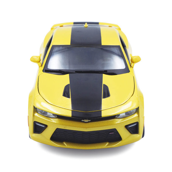 Vehículo de colección. Modelo 2016 Chevrolet Camaro. Tamaño aproximado: 9" réplica, cuerpo de metal fundido con piezas de plástico. Apertura de puertas con capucha o tronco, volante de función completa. Cuatro ruedas de suspensión. Edad recomendada 3+ años.
