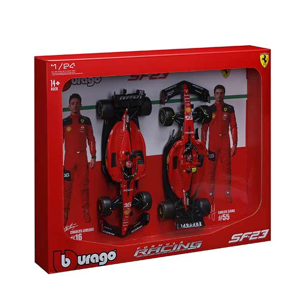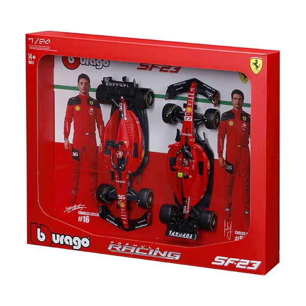 Pack de 2 réplicas de autos F1 a escala 1:24, fabricados en metal fundido con piezas plásticas. Cada modelo incluye interior detallado y carrocería con pintura serigrafiada de alta calidad. Ideal para coleccionistas y fanáticos del automovilismo. Recomendado para mayores de 3 años.