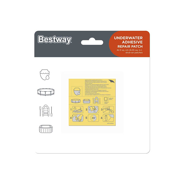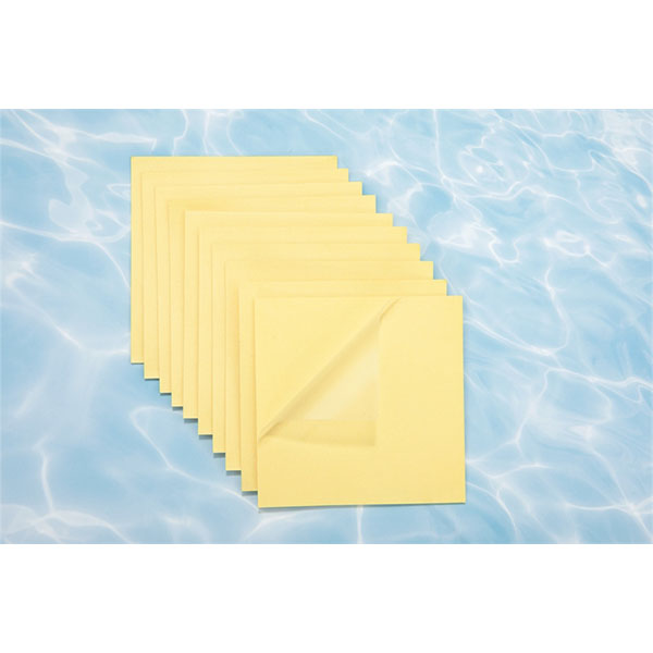 "Nuestros parches de reparación, con un tamaño de 42,3 cm² cada uno, son ideales para reparar pinchazos y abrasiones en piscinas y otros artículos subacuáticos. El contenido incluye 10 parches de reparación, lo que te proporcionará una solución duradera para mantener tus artículos subacuáticos en perfecto estado."