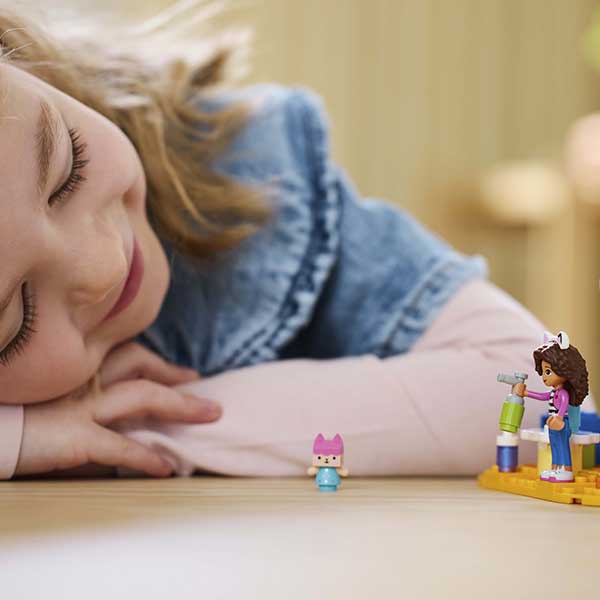 El set LEGO® La casa de muñecas de Gabby Creaciones con Bebé Box (10795) es un juguete para niños y niñas de 4 años o más orientado al juego simbólico y diseñado para desarrollar la creatividad y fomentar el juego imaginativo. Este modelo está lleno de brillantes colores, conocidos personajes y divertidas características que reconocerán y adorarán a los fans de La casa de muñecas de Gabby, de DreamWorks Animation. Este juguete LEGO también es un juego de manualidades. Incluye un pincel, pintura, tijeras y aerosol, además de un minipersonaje de Gabby y una figura de Bebé Box. Juntos, Gabby y Bebé Box pintan un cuadro y construyen una maqueta de la casa de muñecas de ella.