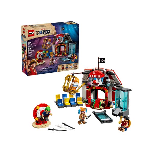 ¡Revive la emoción de ONE PIECE con el set LEGO® Carpa de Circo de Buggy el Payaso! Incluye minifiguras de Luffy, Zoro, Nami y Buggy, además de una carpa reversible con gradas desmontables, trono, jaula colgante, rueda giratoria y tanque de agua. Ideal para fans desde 8 años que aman la acción, los desafíos y los detalles del anime.