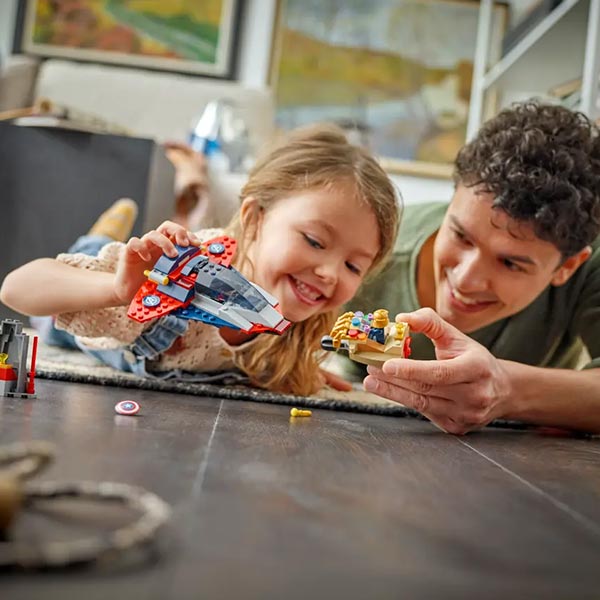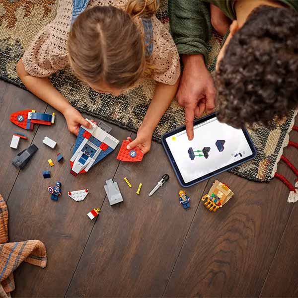 Set ideal para niños desde 4 años. Incluye Quinjet de Capitán América, nave Guantelete de Thanos con lanzamisil, 2 minifiguras y piedra cósmica. Con ladrillos para principiantes, perfecto para introducirse al universo LEGO® Marvel.