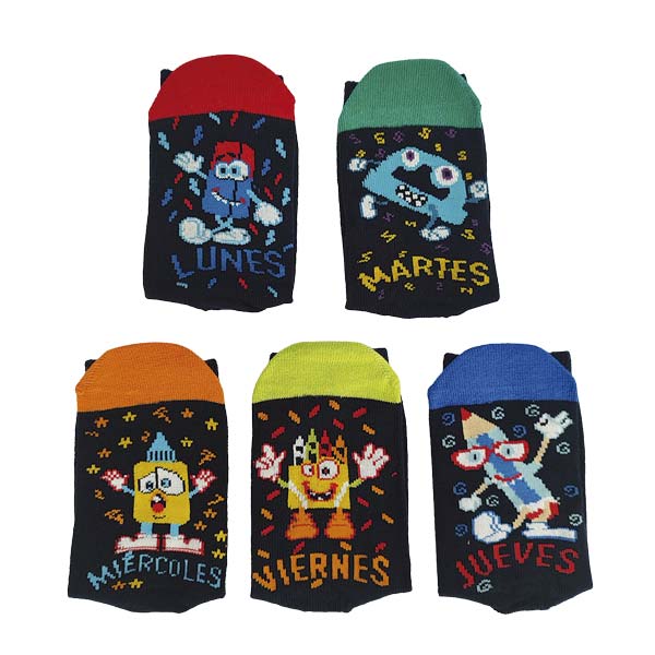 Estos calcetines escolares para niño en color azul, con estampados de los días de la semana, son perfectos para mantener los pies cómodos y organizados durante la semana escolar. Con una composición de 78% algodón, 19% poliéster y 3% spandex, ofrecen suavidad, elasticidad y un ajuste cómodo. Disponibles en talla 7-9, el pack incluye 5 pares, ideales para el día a día escolar.