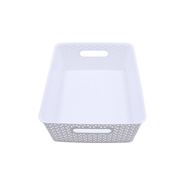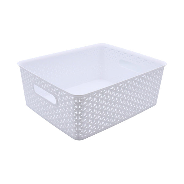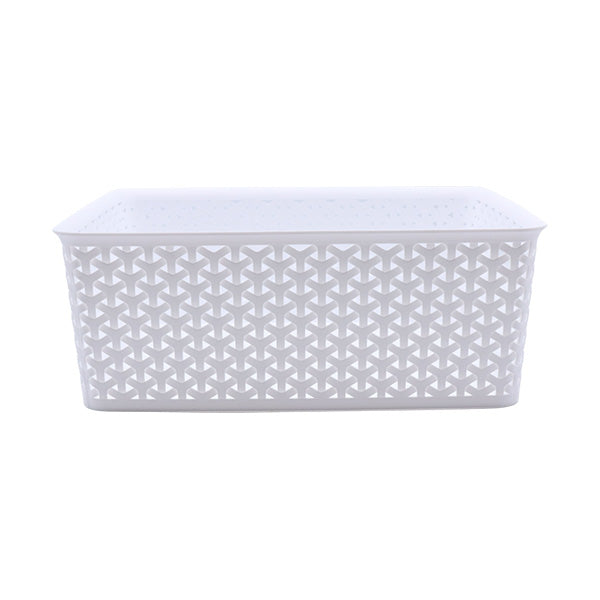 Canasta organizadora plástica ultra liviana y resistente, diseñada para almacenar hasta 12 litros de contenido de cualquier tipo. Es ideal para asignar un espacio específico para una categoría determinada de productos. Con unas dimensiones de 350x290x133mm, ofrece suficiente espacio para organizar tus pertenencias. El color estándar de la canasta es transparente, pero puede ser personalizado según tus preferencias. Simplifica tu organización y mantén tus pertenencias ordenadas con esta práctica canasta organizadora.
