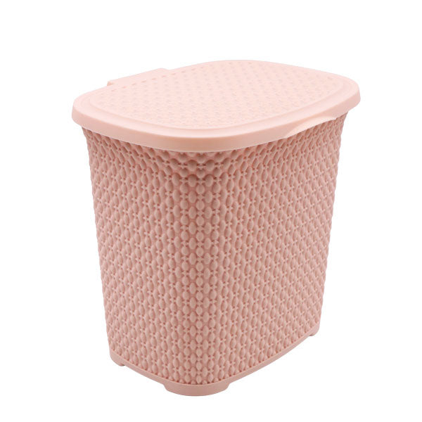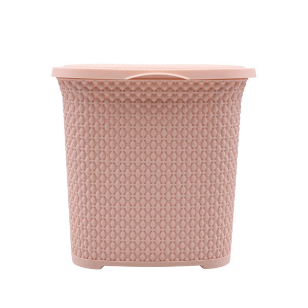 Material: plástico. Colores disponibles: blanco, café, gris y beige. Capacidad: 6 litros. Medidas: 21x24,5x23,5cm. Cuenta con una tapa y agarraderas. Además de un diseño moderno y elegante.