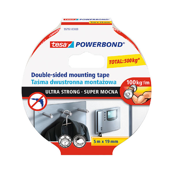 Ideal para uso interior, sujeta objetos de hasta 10 kg por cada 10 cms de cinta. Se adhiere a azulejo, madera y plástico. Tiene mejor desempeño en superficies firmes y lisas.