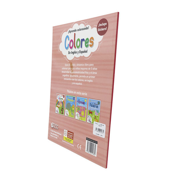 Este divertido y dinámico libro para colorear permite a niños mayores de 3 años desarrollar la psicomotricidad fina y el área cognitiva. Igualmente, permite un primer encuentro con los nombres de los colores, en inglés y en español.