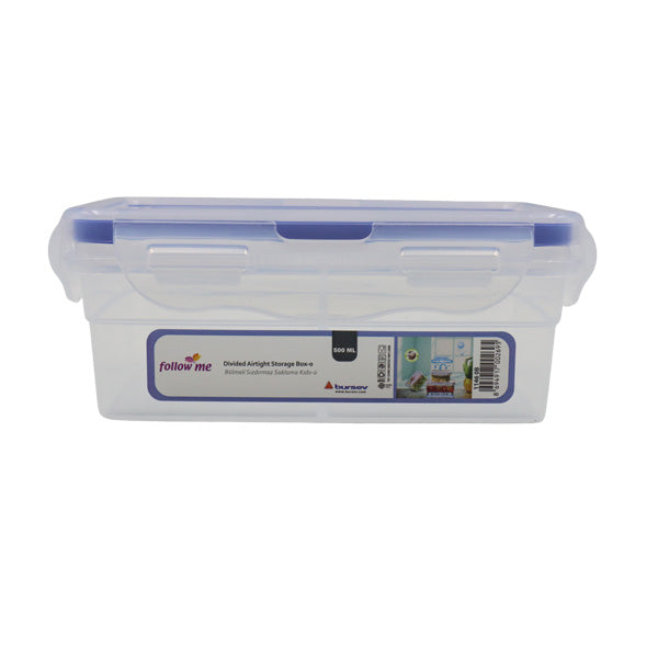 Material: plástico. Color: transparente y azul. Capacidad: 500ml. Medidas: 10,5x15,5x6cm. Este contenedor cuenta con un cierre hermético antiderrames además de que cuenta con divisiones internas para mantener diferentes comidas en su lugar. Es apilable.