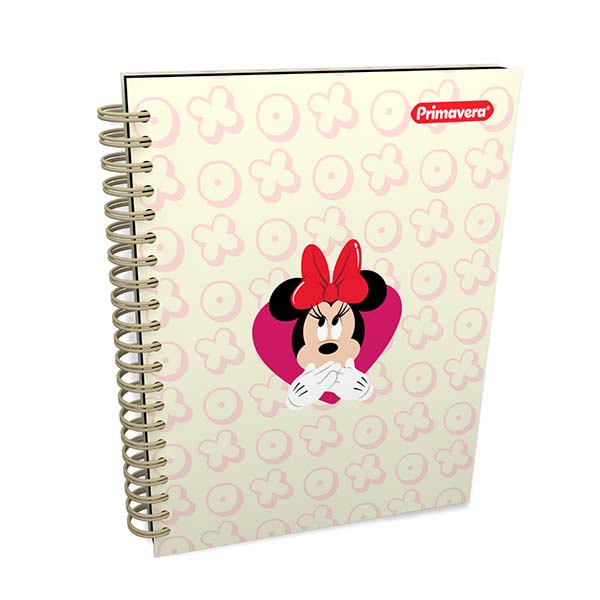 Cuaderno argollado de 5 materias Minnie, incluye stickers para personalizar tus páginas. Con pasta dura para proteger tus escritos, bolsillo funcional para documentos importantes y argollado doble O de color. Terminados espectaculares con plastificado mate, estampado metalizado y brillo UV en la portada. ¡Un cuaderno único que destacará en cualquier lugar!