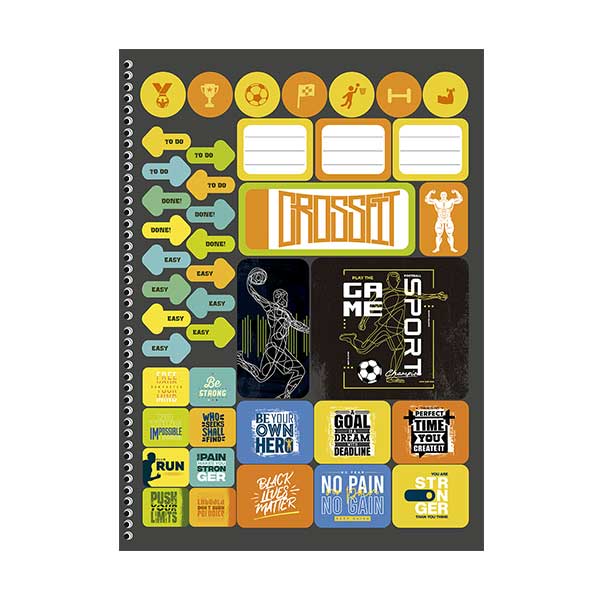 El deporte es sinónimo de salud, calidad de vida, fuerza de voluntad y superación. Por eso la colección representa, un universo de posibilidades a ser exploradas por fans de las actividades representadas. ? 4 portadas - barniz zonificado - stickers- bolsa de papel.