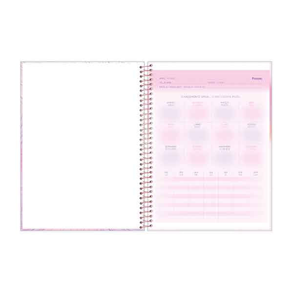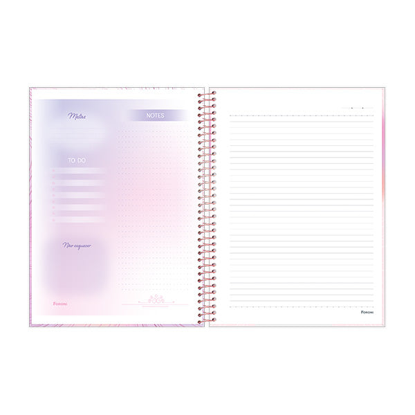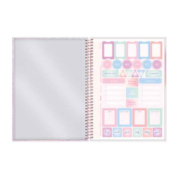 Una marca extremadamente envolvente, sus tonos delicados con degradados suaves, forman un diseño actual y encantador. ? 4 portadas - espiral dorado – laminado - acabados en dorado – stickers – bolsas plástica