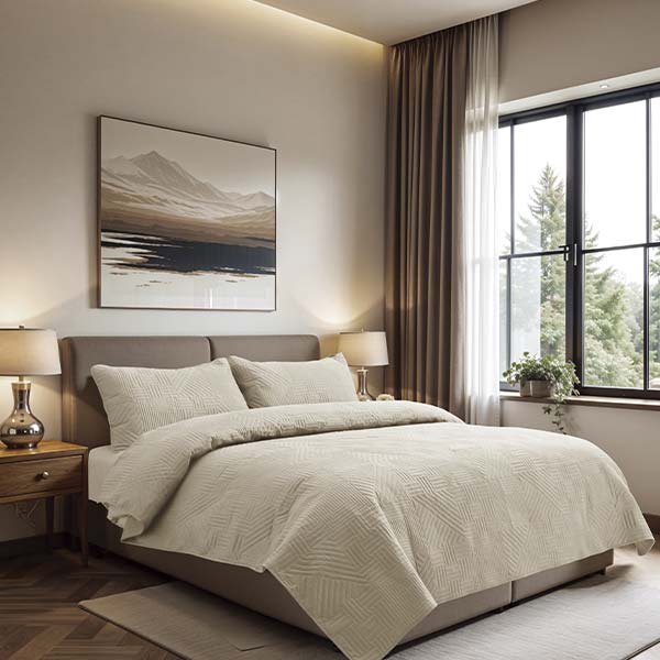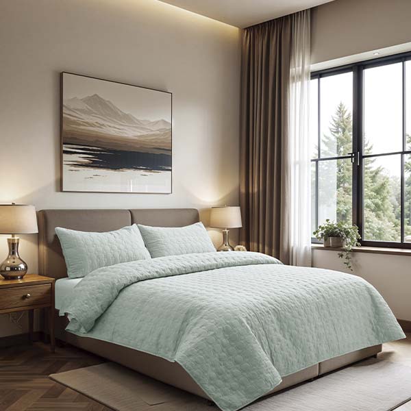 Cubre cama King (Ref: BCSK50613A), elegante y confortable. Su diseño sofisticado y acabado impecable aportan estilo y calidez a tu habitación. Confeccionado en material suave y duradero. Incluye 3 piezas. Disponible en variedad de colores.