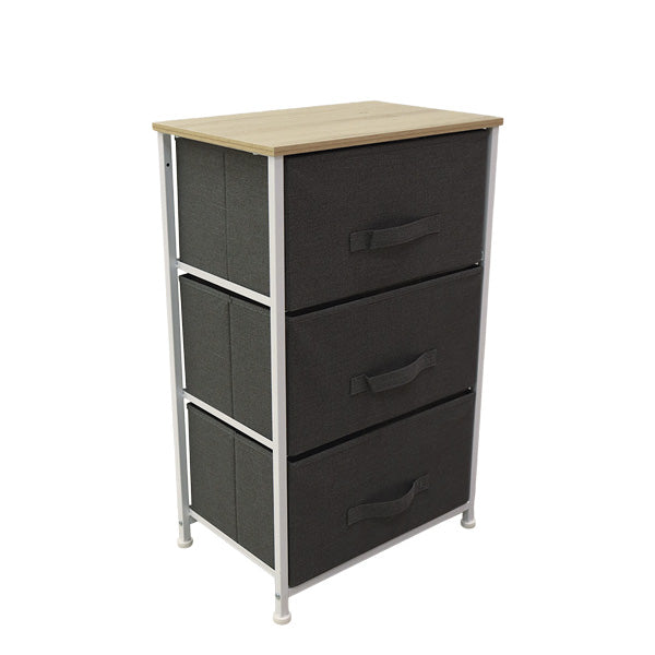 Este mueble con 3 gavetas es una opción ideal para organizar su dormitorio, hogar u oficina. Está fabricado con una estructura de metal y tela, lo que lo hace duradero y resistente. Sus medidas de 45x30x73 cm lo hacen compacto y adecuado para espacios más pequeños. Las gavetas proporcionan un espacio adicional de almacenamiento donde puede guardar ropa, documentos, artículos de papelería u otros objetos personales. Además, su diseño simple y funcional se adapta a diferentes estilos de decoración y le ayuda a mantener sus cosas organizadas y al alcance de la mano.