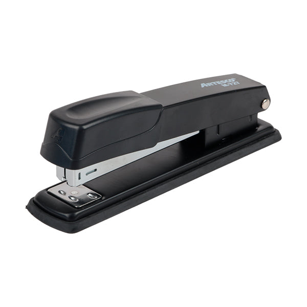 "Asegura tus documentos con facilidad utilizando la grapadora Artesco. Con capacidad para engrapar hasta 25 hojas, esta grapadora presenta una estructura metálica e inoxidable que garantiza durabilidad y resistencia. Su yunque giratorio permite un engrapado abierto y cerrado, ofreciendo versatilidad en su uso. Además, su diseño ergonómico proporciona comodidad durante el uso prolongado. Utiliza tiras completas y está disponible en un elegante color negro. Confía en la calidad y funcionalidad de la grapadora Artesco para mantener tus documentos organizados."