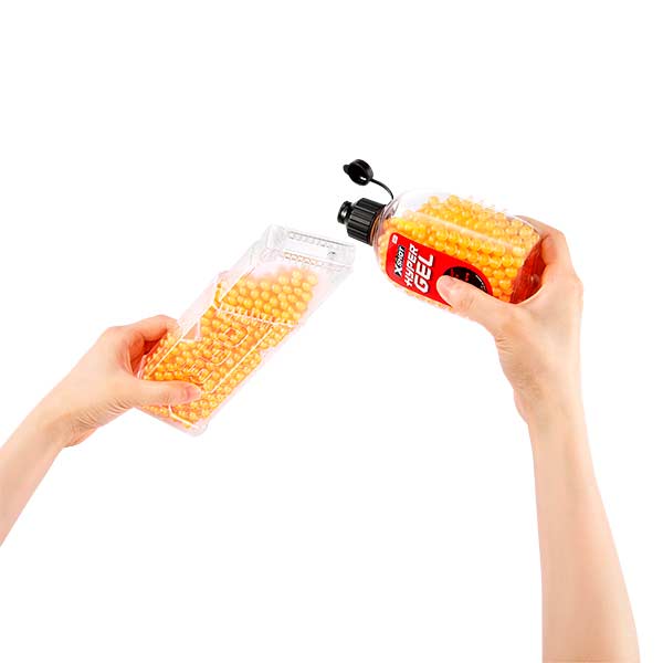 ¡Sumérgete en el espíritu de lucha con X-Shot hyper gel! El X-Shot hyper gel trace fire puede disparar hyper gel pellets a 60 m por segundo en modo motorizado completo y semiautomático. Trace fire tiene un cargador con una capacidad de 800 balines. Cuando se quede sin gránulos de gel, simplemente gire su blaster y recárguelo desde el cargador con una capacidad de 800 Gránulos. Este gel blaster motorizado tiene una batería recargable. ¡Con 10000 gránulos de hipergel y gafas protectoras, solo agregue agua y estará listo para la batalla definitiva de gel Blaster!