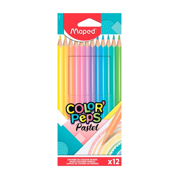 Lápices de color, caja de 12 colores pastel, mina blanda y resistente de 2.9 milímetros, ergonomía de lápiz triangular para mejorar la sujeción, para una utilización fácil y cómoda, facilidad para sacar punta, no se astilla, madera de tilo y colores altamente luminosos.