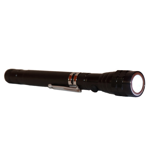 Brillante linterna LED que la hace una gran herramienta para trabajo en el hogar y automóviles. La herramienta magnética y la potente luz hacen que, recoger objetos metálicos de difícil acceso, sea mucho más fácil. Diseño de antena retráctil perfecto para pequeñas esquinas.