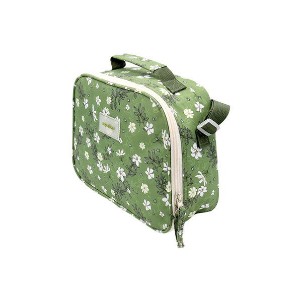 "Lonchera verde con estampado floral, diseñada para mantener tus alimentos frescos y organizados. Compacta, resistente y con un diseño encantador, perfecta para el día a día. ¡Combina funcionalidad y estilo!"