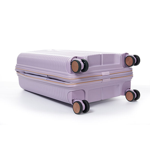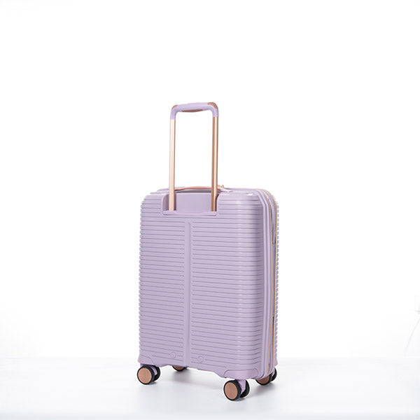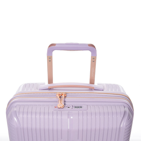 Maleta de 20" color lila marca Verage. Ideal como equipaje de mano, combina ligereza, resistencia y funcionalidad. Cuenta con ruedas giratorias, asa retráctil y compartimentos internos para una organización eficiente en tus viajes.