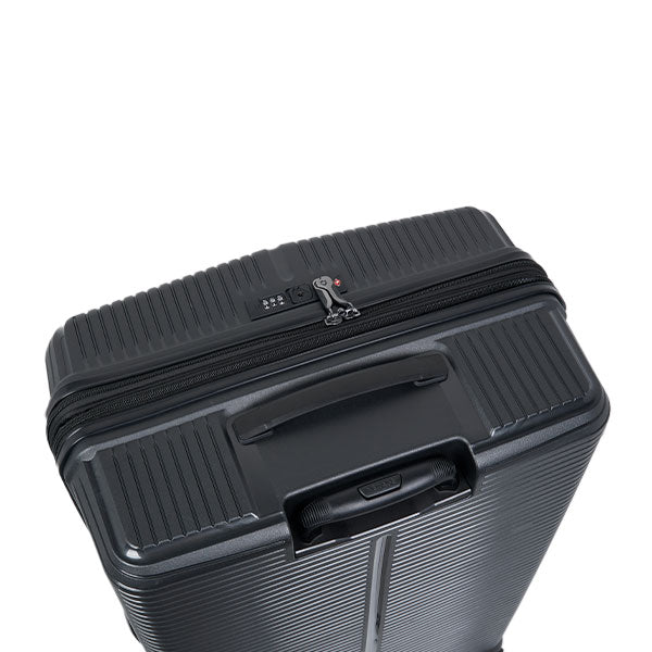 Maleta de 28" color negro, marca Verage. Espaciosa y resistente, ideal para viajes largos. Diseño elegante con ruedas giratorias y estructura ligera para mayor comodidad.