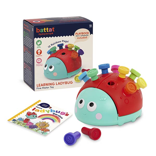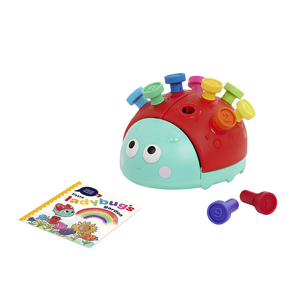 Explora colores y números con la simpática Mariquita Educativa de Battat: incluye 10 clavijas numeradas, fáciles de manipular, y un libro de juego ilustrado que narra una divertida aventura floral. Inserta las clavijas para aprender a contar y reconocer colores mientras se desarrolla la motricidad fina y la coordinación ojo-mano. Con espacio de almacenamiento bajo las alas de la mariquita, este juguete resistente promueve el juego independiente y refuerza habilidades cognitivas tempranas en niños desde los 18 meses