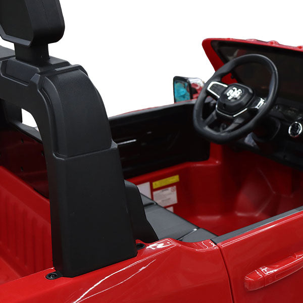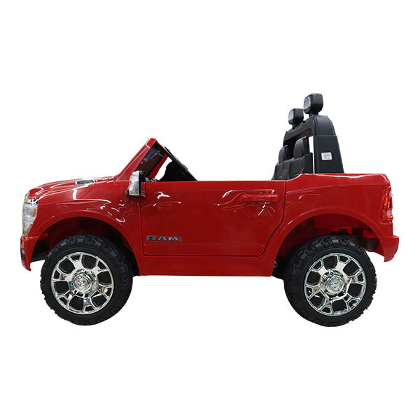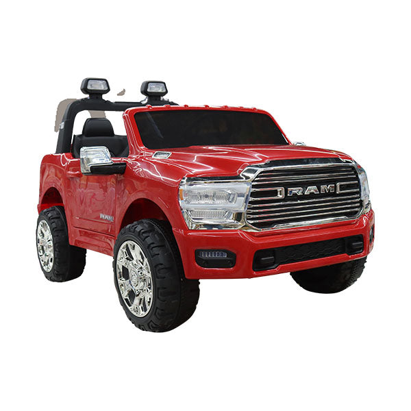 Coche eléctrico infantil RAM con licencia 24V. Batería 24V7AH*1 recargable. Un botón para iniciar, velocidad alta/baja, pantalla de energía, ranura USB/MP3, bluetooth, viene con música y luces. Volantes de fácil montaje. Con barra de tracción. Fácil de transportar en el coche. Viene con control remoto requiere 2 baterías AA (no incluidas). Se recomienda para niños de 3 a 8 años.