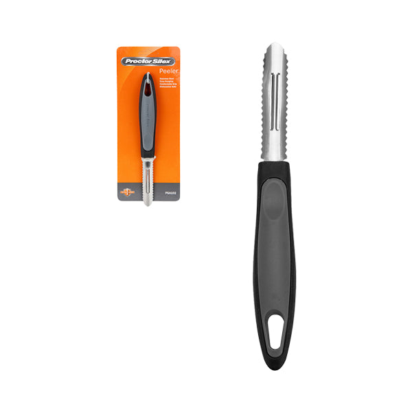 Pelador para frutas y verduras Proctor Silex 22 cm | 8.5". Elaborado en acero inoxidable en su totalidad, evitando desgastarse con el tiempo. Su cuchilla es práctica y ofrece un pelado al ras, evitando llevarse parte del alimento; además de tener un mango ergonómico para sujetarlo con más facilidad. Características: Acero Inoxidable. Ideal para frutas y verduras. Mango ergonómico. Cuchilla afilada. Fácil de lavar.