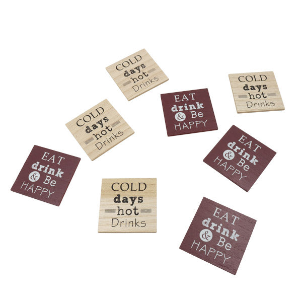 "Set de 8 piezas de figuras decorativas, fabricadas en madera prensada con medidas de 9x8 cm cada una. Ideales para añadir un toque decorativo y versátil a tu espacio."