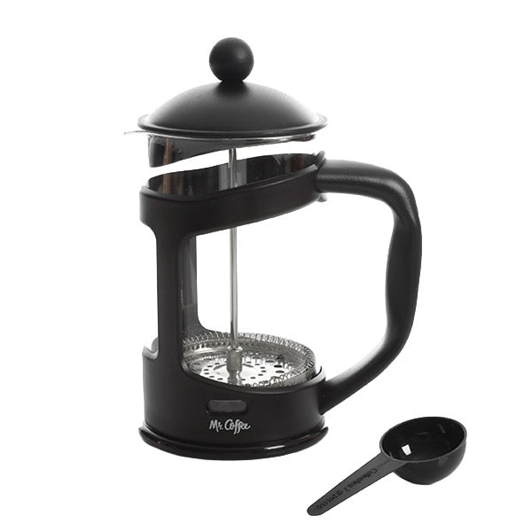 La cafetera de prensa francesa Mr Coffee Brivio de 3.5 tazas | 28 onzas | 825 ml con tapa de plástico le permite preparar un sabroso café en minutos. Cuenta con un filtro de malla de acero inoxidable para la extracción de primera calidad de los aceites aromáticos y sabores sutiles de su café.