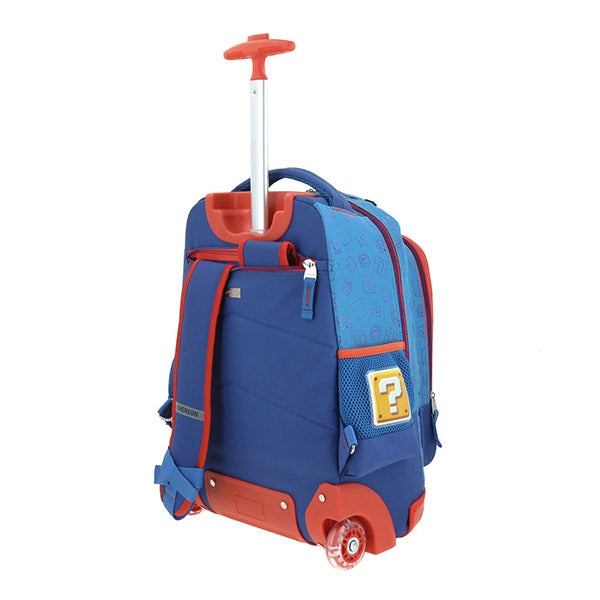 Ideal para aventuras escolares, combina diseño y funcionalidad con un panel de textura visual, prácticos bolsillos, doble poste retráctil y ruedas de gel para fácil movilidad. ¡Lleva la diversión de Mario Bros contigo!