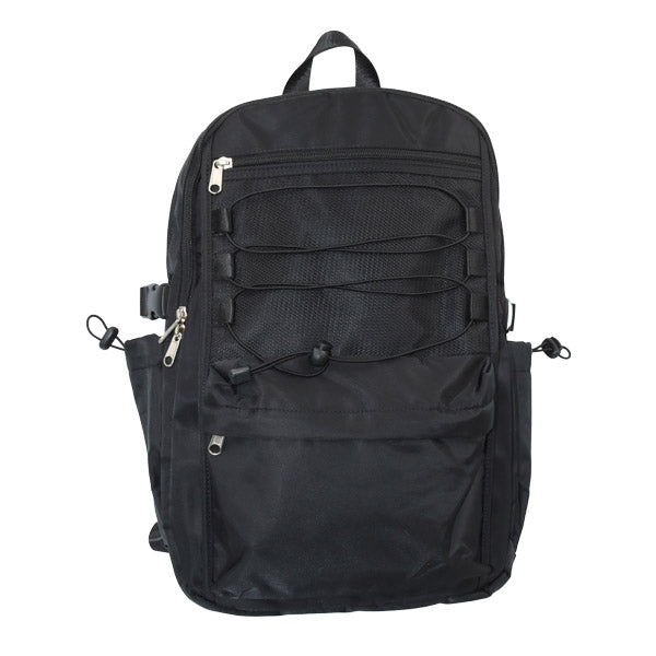 Fabricado en nylon resistente, con cierre tipo liga para acceso rápido. Medidas: 29x46x14cm. Ligero y práctico, ideal para estudiantes o uso diario con un diseño moderno y funcional en color negro.