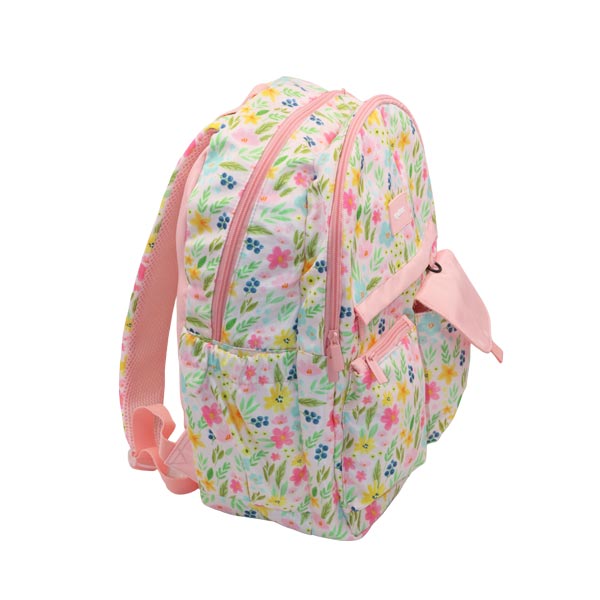 "Salveque rosado con estampado floral, diseñado para destacar con estilo y practicidad. Espacioso y cómodo, ideal para llevar tus esenciales a cualquier lugar. Material duradero y diseño encantador que combina feminidad y funcionalidad. ¡Perfecto para tu día a día!"