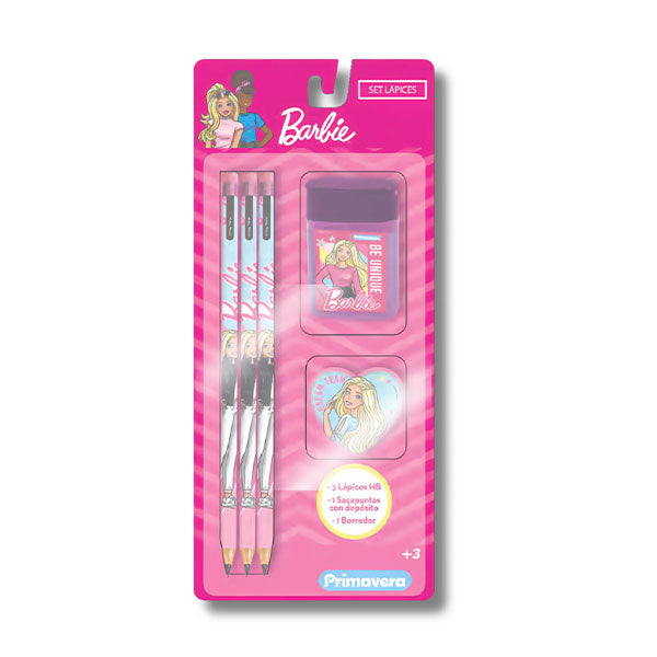 Set 3 lápices, borrador y sacapuntas personaje niña trae todo lo necesario para crear y borrar con estilo. Los lápices tienen divertidos diseños, el sacapuntas afila con precisión y el borrador elimina todos los errores. ¡Hazlo tuyo hoy mismo! Solo con Primavera.