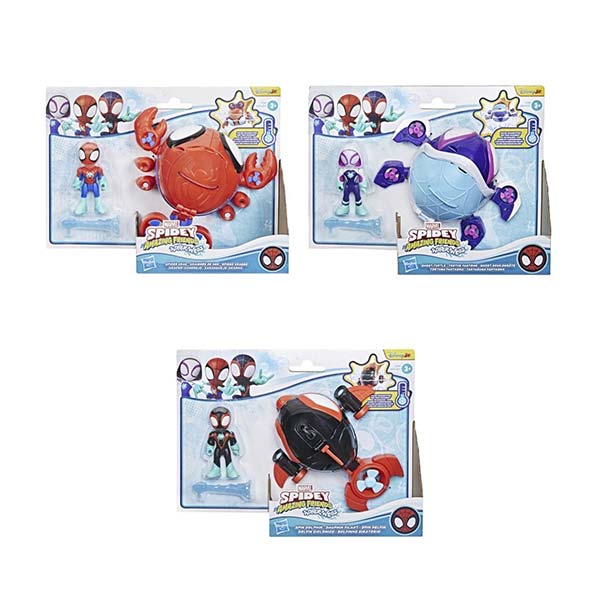 Imagina sumergirte en la acción y la aventura con el vehículo de juguete Water-Webs Spin Dolphin, inspirado en episodios selectos de Spidey y sus increíbles amigos. Este set incluye una figura de acción de 7,5 cm y un divertido y estilizado submarino de juguete. La figura articulada de Miles "Spin" Morales presenta un diseño y una decoración inspirados en la serie de Disney Jr., con un traje actualizado de Spider-Man Water-Webs. La figura también incluye una telaraña desmontable para fomentar el juego imaginativo. Amplía tu aventura con más juguetes de la colección Spidey y sus increíbles amigos de Hasbro, incluyendo juguetes acuáticos, figuras de acción, vehículos y sets de juego. Cada artículo se vende por separado y está sujeto a disponibilidad.