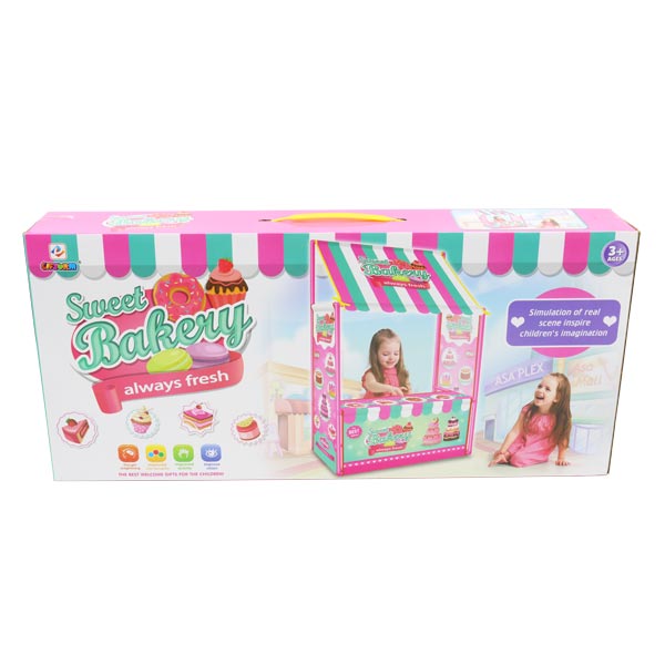 Fomenta el juego creativo e imaginativo con esta adorable tienda de campaña para niños (as) diseñada como un soporte de tienda de postres. Perfecto para niños y niñas. Configurar la tienda de campaña es muy fácil. No requiere herramientas. Simplemente monta el marco y desliza hacia abajo la tela para divertirte instantáneamente. Cuando el tiempo de juego ha terminado, la tienda es fácil de plegar y almacenar. Dimensiones: 138 x 41 x 80 cm. No requiere baterías para su uso. Edad recomendada para mayores de 3 años.