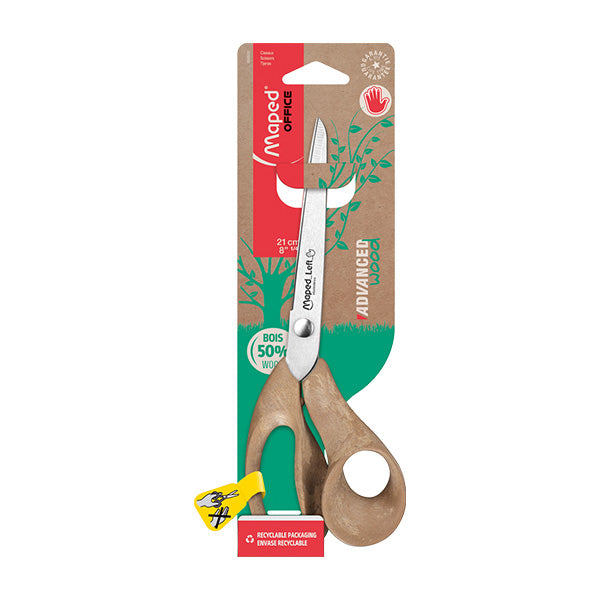 "¡Facilita tus tareas con nuestra tijera para zurdos de 21 centímetros! Fabricada con materiales ecológicos, incluyendo anillas compuestas de un 50% de fibra de madera y embalaje 100% reciclable de cartón. Sus hojas y remache de acero inoxidable garantizan durabilidad y precisión. Diseñada para ofrecer comodidad y precisión, se adapta a diferentes presiones y tamaños de mano. ¡Haz que cortar sea una tarea más fácil y sostenible!"