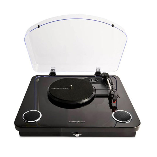 Tocadiscos BlackSpin de Energy Sistem con diseño elegante en negro piano y bambú. Compatible con vinilos de 33, 45 y 78 RPM. Altavoces integrados de 10W, conectividad Bluetooth 5.4 y salida RCA para mayor versatilidad. Incluye función Bluetooth out y grabación USB para digitalizar tus discos. Tracción por correa para una reproducción estable y sonido óptimo. Ideal para amantes del vinilo que buscan estilo y tecnología.